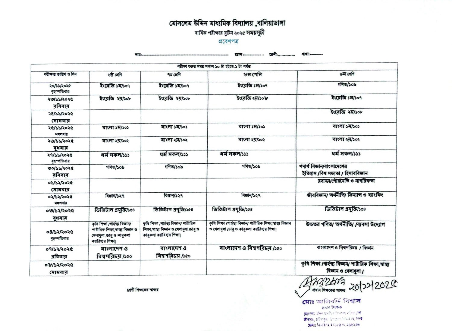 ২০/১১/২০২৫ খ্রি. তারিখ ষষ্ট-নবম শ্রেণির বার্ষিক পরীক্ষা-২০২৫ অনুষ্ঠিত হবে।